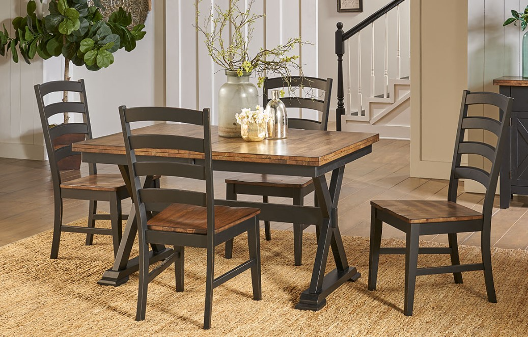 Bring warmth and character to your dining space with this beautifully crafted set. The rich chicory top paired with a slate black base offers a striking two-tone look, while the classic farmhouse design and solid wood construction ensure lasting style and comfort for everyday meals or special gatherings.Read More