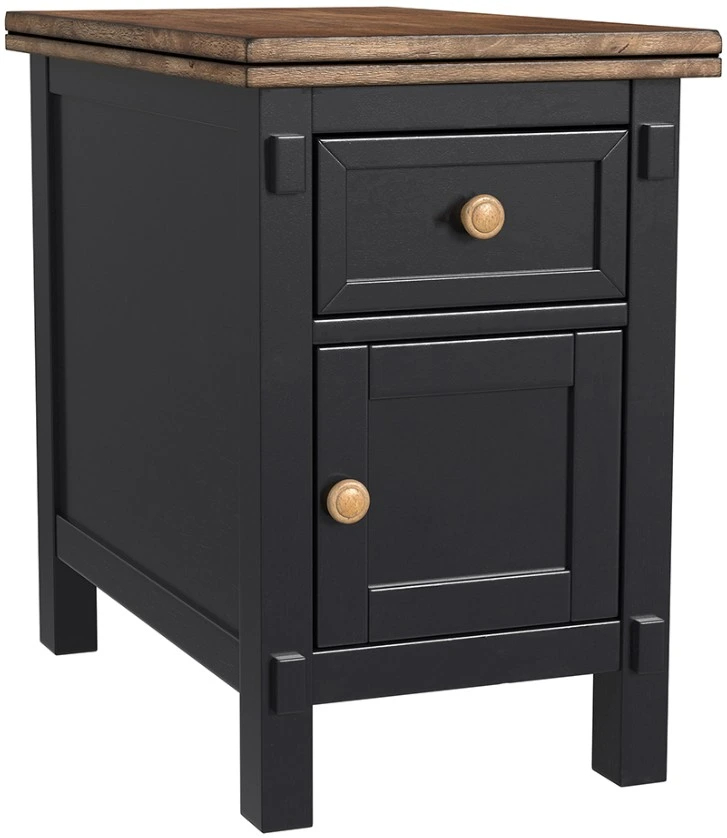 The Stormy Ridge chairside table features a rich chicory top paired with a bold slate black base, blending rustic charm with modern contrast. Its sturdy construction, clean lines, and convenient lower shelf make it a stylish and functional living room accent.Read More