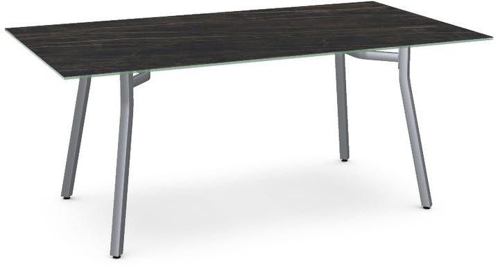 Italian porcelain on glass tabletop with a black marble finish.