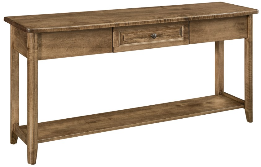 The Carson sofa table constructed with solid North American maple, handcrafted by Amish artisans. Featuring a sturdy lower shelf for extra storage or display, This piece will add a touch of glamour to your living area.Read More