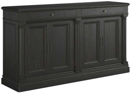 The generously proportioned Atrium Buffet measures 84 inches long, including two drawers and two cabinets with adjustable shelves. The top is made of honed black granite, and cabinet and drawer fronts are accented with traditional paneling and cylindircal column motifs, finished with the rich patina of oil rubbed bronze hardware.Read More