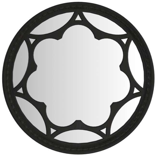 Graceful arches frame the center of this round mirror, creating the illusion of gazing through an 18th-century cathedral window, complete with classically inspired egg-and-dart details