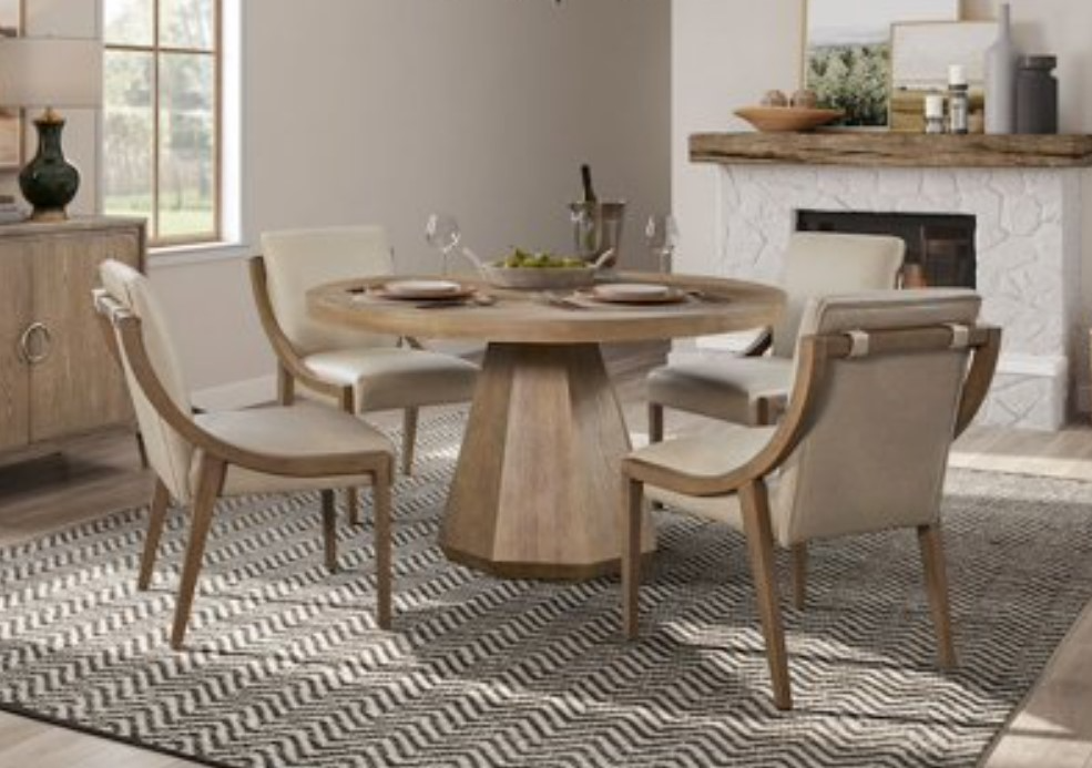 Bring timeless elegance and everyday functionality to your dining space with this sophisticated 5-piece set. Featuring a round pedestal table with a built-in lazy Susan and four leather sling chairs, this ensemble delivers refined comfort, rich textures, and effortless style that perfectly suits modern or transitional homes.Read More