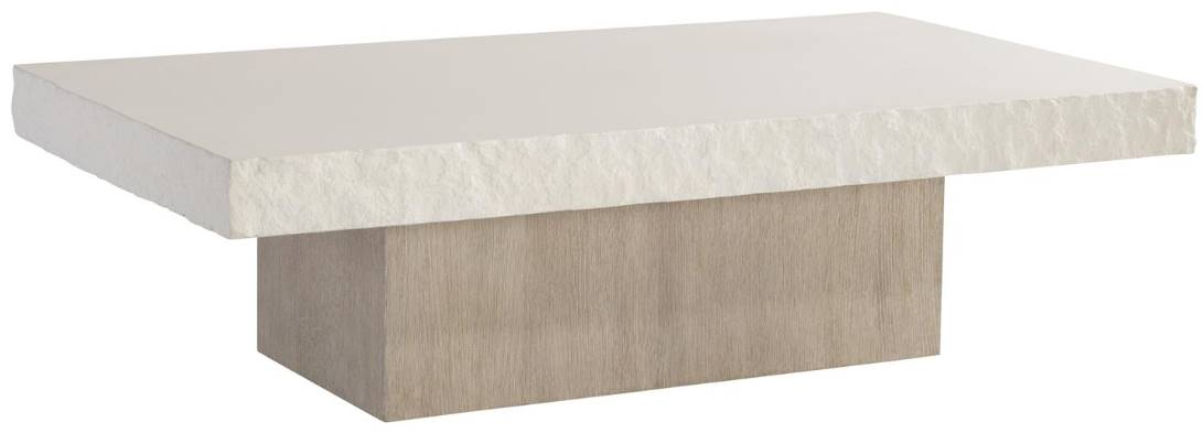 The Beauclair cocktail table takes a modern primitive approach with a textured quartered oak base in the Flaxen finish. A cast concrete top looks like quarried stone with its textured sides and smooth surface in a Vintage Cream finish.Read More