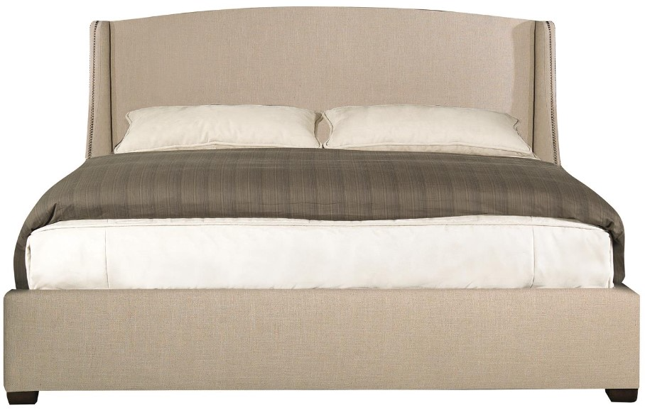 Bernhardt Interiors offers a selection of luxurious beds featuring fine craftsmanship and a distinctly modern styling. The elegant elements at play on the Cooper wing bed make it a natural choice for the sophisticated bedroom. A slightly arched headboard features winged sides for a luxurious look. Nailhead trim adds a refined touch.Read More