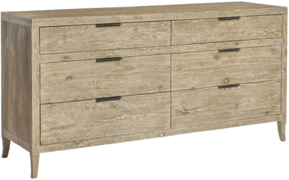 The Tribeca dresser pares traditional design to simpler lines and stunning rustic style. The details of natural wood are highlighted by the aurum finish. Each of the six drawers has a textured metal pull tab in barlow finish.Read More