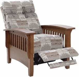 The Tuscan recliner is rustic and relaxing. This mission style recliner offers the solid, handcrafted look of the mission design philosophy. The Distressed Pecan finish gives the wood paneling a warm feel that will accent the fabric of your choice for the supportive cushions.Read More