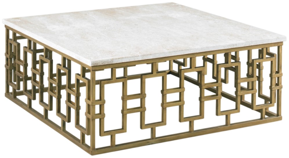 Elevate your living space with the Chicklet cocktail table, a stunning piece from the infinity collection. Its bracelet-inspired aged gold base pairs beautifully with a honed travertine stone top, creating a luxurious, jewelry-like presence. This striking table adds elegance, texture, and timeless sophistication to any contemporary setting.Read More