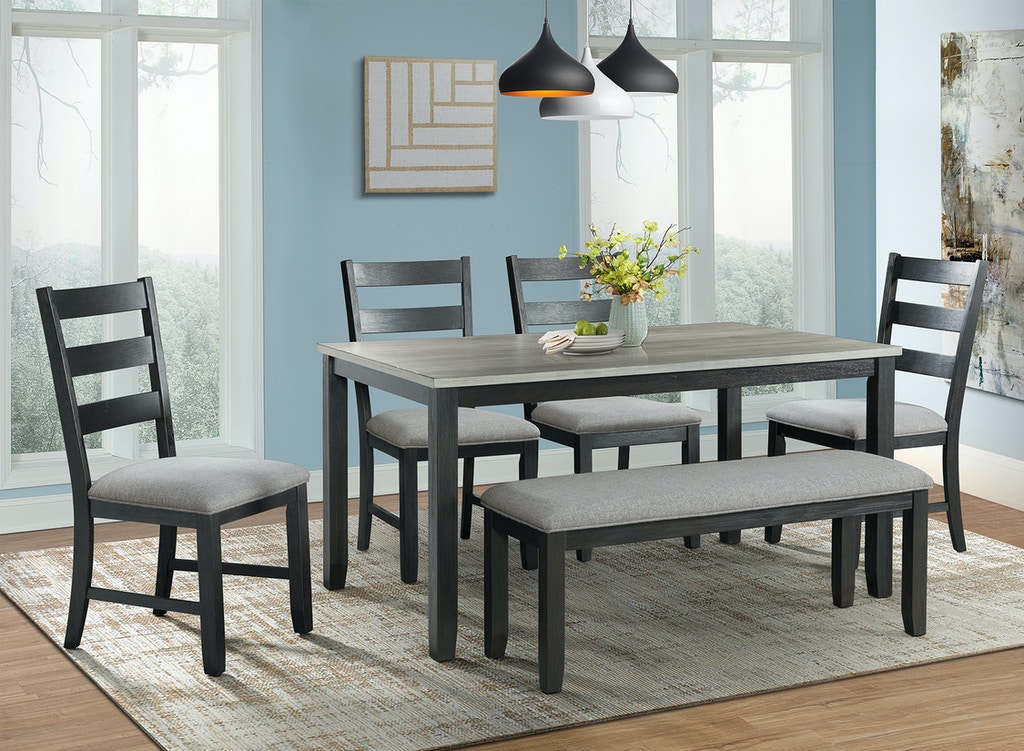 Bring refined style and warm design to your dining area with the Martin dining collection. Constructed of wood solids and veneers. This set offers tapered legs, ladder back wooden chairs, bench, and upholstered cushion seats. Clean-lined, comfortable cushions add the finishing touch to this charming collection.Read More