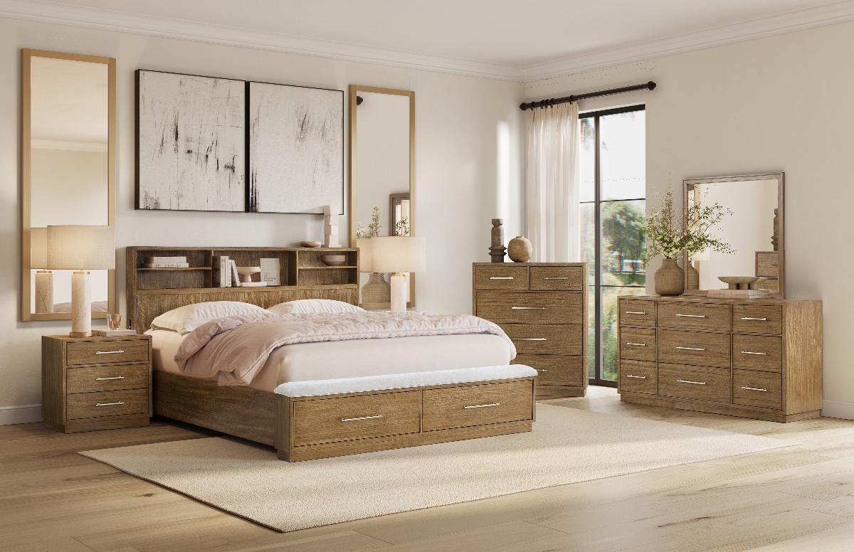 The Phase 3 Platform bed blends timeless elegance with modern innovation. Finished in a warm Chai Tea hue, it features a mattress-ready platform design, dual wireless chargers, USB ports, and a padded upholstered bench footboard with cedar-lined storage drawers—offering comfort, convenience, and refined sophistication.Read More