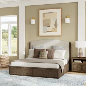 The Athens upholstered storage bed makes a bold, grand statement that fills your space with a regal gravitas. A stately, noble silhouette, Athens fits perfectly into a transitional style. Beautifully fashioned from high-quality, ethically harvested rubberwood, this gorgeous piece comes in a decadent chocolate brown finish and ivory performance fabric.Read More
