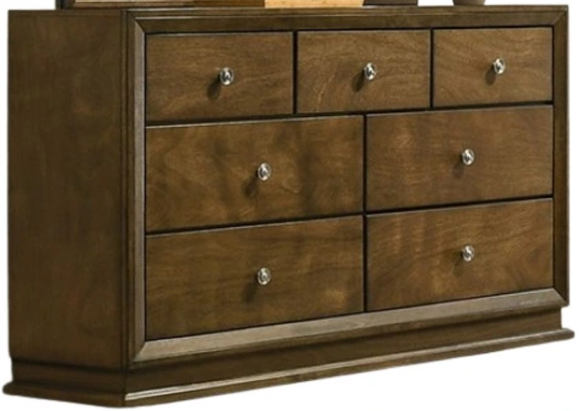The Furniture of America® Kirkham Walnut Dresser showcases a beautiful walnut finish with a classic design. Its spacious drawers provide ample storage, while the sleek metal hardware adds a modern touch. A perfect blend of style and functionality for any bedroom.Read More