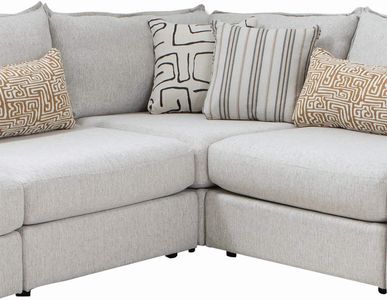 This corner fabric in Durango Pewter, throw pillows, exposed round feet, and cushion back.Read More