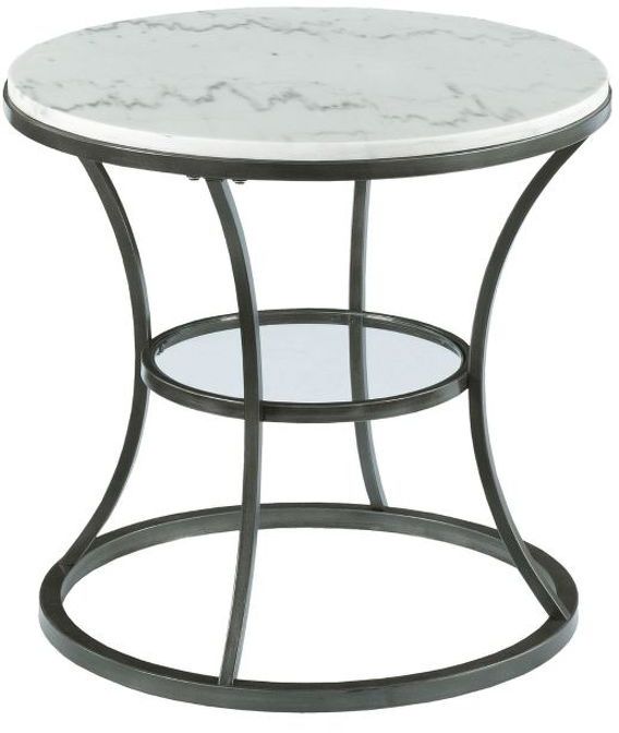 Hammary® Impact White Marble Top Round End Table with Bronze/Silver Base is Crafted of metal, white marble, and tempered glass. Bronze with silver undertone metal. Inspired by casual contemporary styling and a mixing of casual metal and white marble tops.Read More