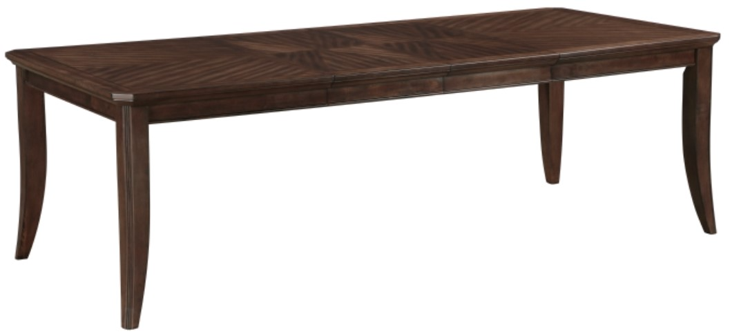 Elevate your dining experience with this elegant extendable dining table, designed to comfortably seat up to eight guests. Crafted from high-quality birch veneer, solid wood, and engineered wood, this table showcases a rich cherry finish complemented by a sophisticated dark walnut inlay, adding a touch of classic charm to any dining space.Read More
