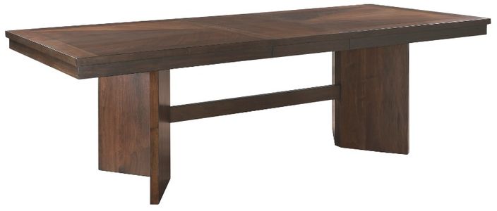 Modern lines pair with subtle rustic influence to create the design of the franco collection. The prominent grain of the collection’s walnut veneer is highlighted by a walnut finish. The angular lines of the trestle table base provide ample support for the table’s rectangular top.Read More