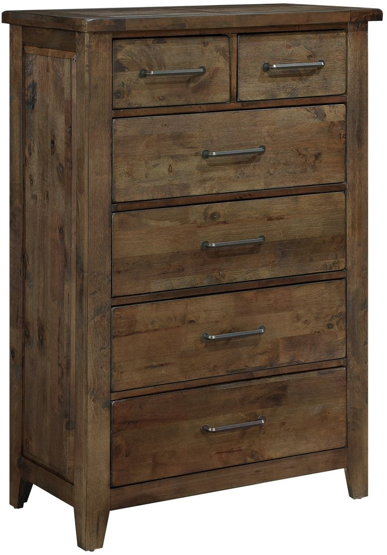 Classic transitional design serves as a base for the natural qualities of the solid wood utilized to create the rustic look of the Jerrick Collection. Metal hardware furthers the authentic rustic look of the chest while a burnished finish serves to highlight the solid wood grain while allowing each plank to serve as a unique accent to the overall design.Read More