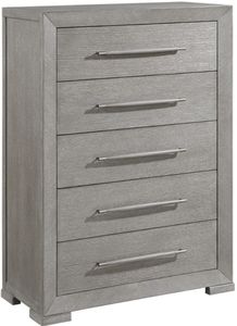 This chic and practical chest of drawers offers vertical storage with a modern aesthetic, making it an ideal solution for organizing your bedroom essentials. Constructed from a durable blend of embossed oak veneer, wood, and engineered wood, and finished in a sophisticated gray, this chest promises both longevity and contemporary style.Read More