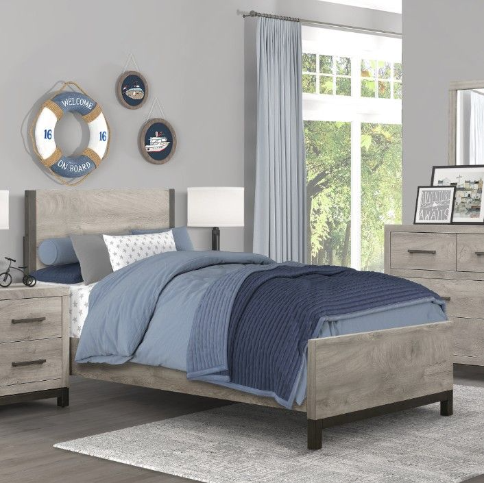 The sleek design of the Zephyr Collection pairs clean lines with modern convenience to create a style that will be the perfect palette for your design aspirations. The twin low-profile panel bed features painted metal-finish banding on the headboard’s sides.Read More