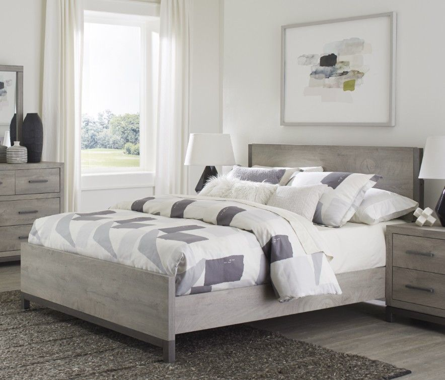 The sleek design of the Zephyr Collection pairs clean lines with modern convenience to create a style that will be the perfect palette for your design aspirations. The full-size low-profile panel bed features painted metal-finish banding on the headboard’s sides and the footboard’s base rail.Read More
