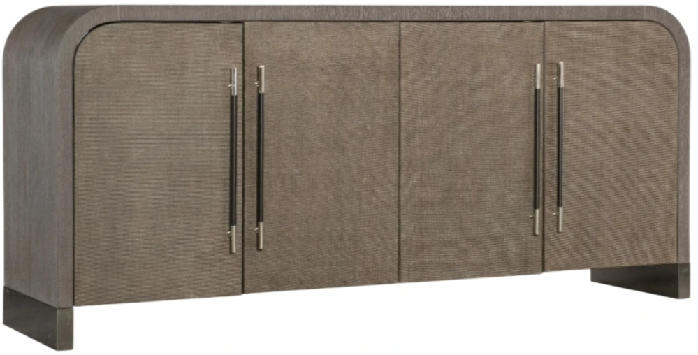 Sleek and stunning with a timeless sophistication and soft modern aesthetic, the Modern Mood buffet combines quartered oak veneers with raffia-wrapped doors, warm pewter brushed metal bar pulls accents. The mink finish has dark, earthy brown hues with notes of black, offering a serene style.Read More