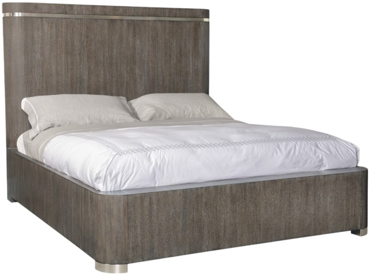 With an unmistakably modern aesthetic that transcends time, the stunning Modern Mood panel bed has warm pewter-finished metal inlay trim in the headboard and metal-wrapped feet on the footboard, contrasting with the wire-brushed dark mink finish on the oak veneer frame.Read More