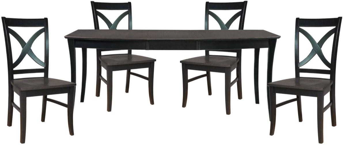 Elevate your dining space with the Cosmopolitan dining set, featuring a sleek coal tabletop and bold black apron and legs. Designed for style and convenience, it includes a self-storing leaf and matching chairs with coal seats and sturdy black frames for modern comfort lasting.Read More