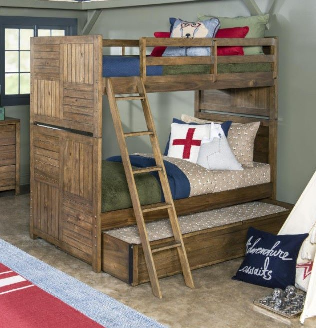 Bunk requires Ladder, but for room planning size without Ladder is: 42x80x70. Note: This Bunk Bed can be assembled as two Twin Beds. Summer Camp is a youth bedroom group that captures the look and feel of being away at camp.Read More