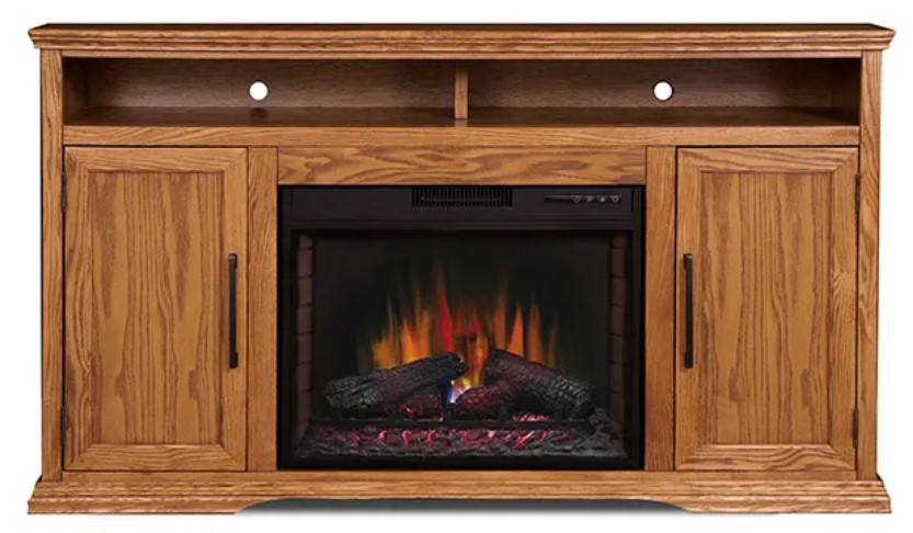 This Colonial Place 66" Fireplace Console boasts an American styled group with all of the understated charm and appeal of rich, traditional furniture. It holds up to a 75" TV with a house warming 28" Fireplace Insert that has Spectrafire® flame effect technology that offers 3 blue and 3 amber brightness options for the perfect ambiance. So curl up and stay toasty warm, while binge watching your favorite TV show or movie.