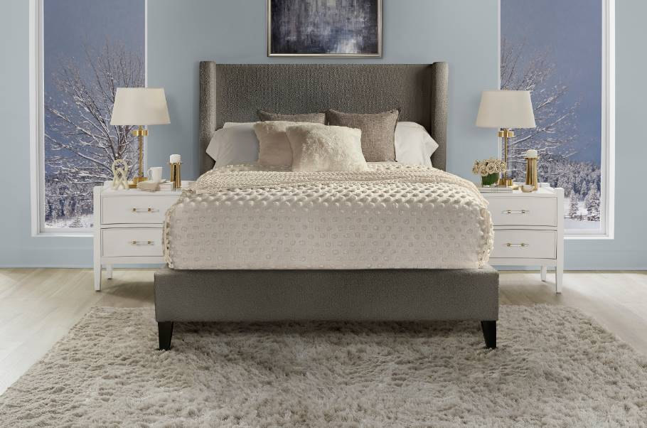 Tailored to perfection, the stately Angel bed creates a signature design aesthetic. Its tall, slightly winged headboard creates the perfect backdrop for reading or watching a favorite show, while its classic silhouette enhances the beauty of any bedroom. Upholstered in a soft, textural bouclé fabric.Read More