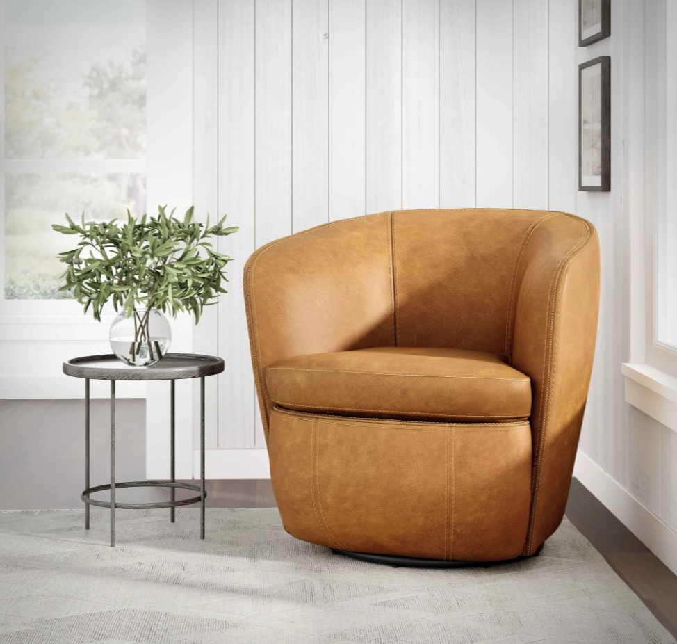 Our timelessly chic Barolo leather swivel chairs feature a classic yet versatile silhouette that fits effortlessly into almost any room. This low-profile barrel seat is wrapped in glove soft leather, offering 360-degree swivel action to allow for quick pivots in any direction.Read More