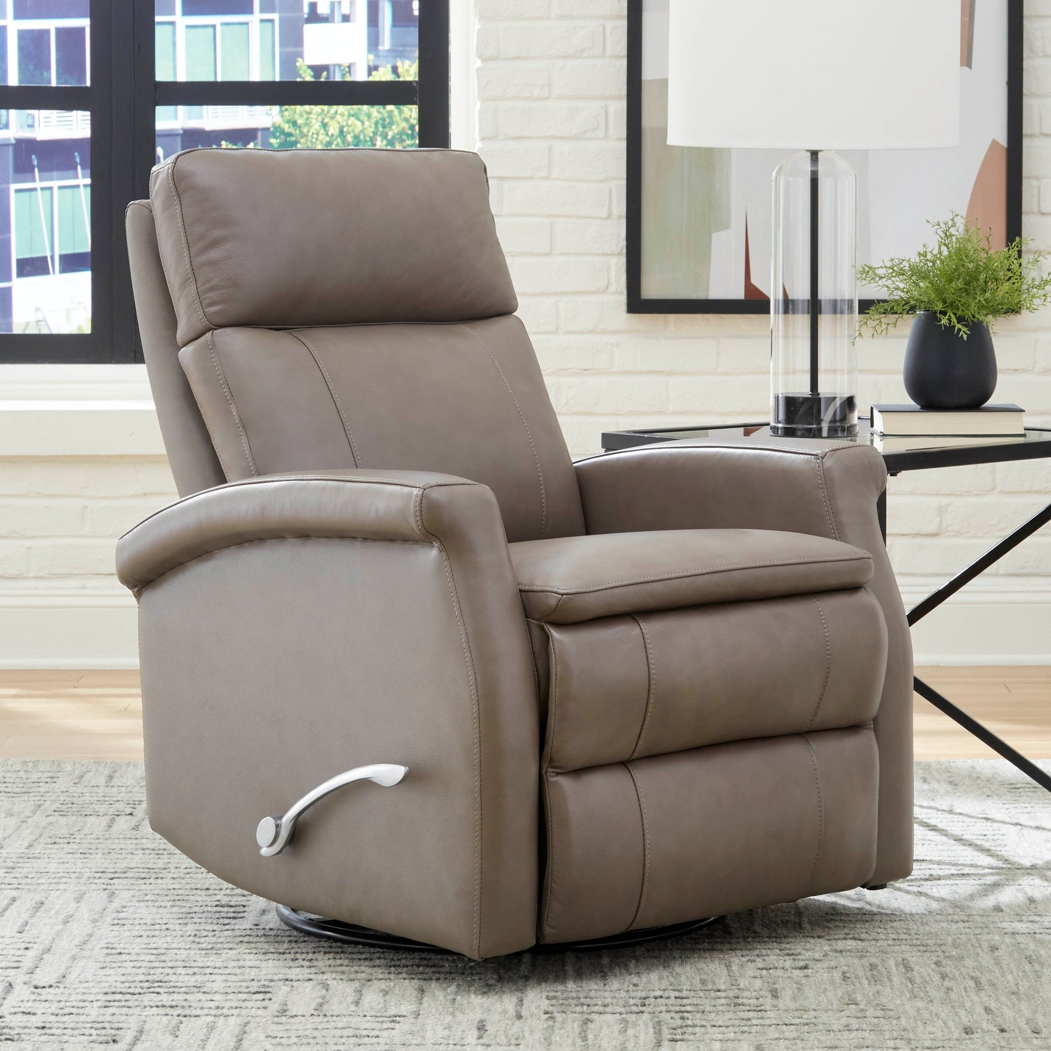 Skilled craftsmen expertly tailor the Bristol swivel glider to ensure smooth, clean seams and welts. It has a key arm design with a pillow-top seat and offers a 360-degree swivel with a smooth, quiet glide. This contemporary piece combines style and utility seamlessly, making it a perfect addition to any room.Read More
