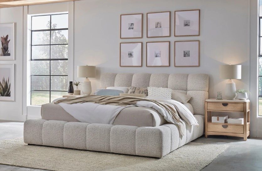 A beautifully unique, upholstered and tufted bed that ties the natural materials and calming aesthetic of the rest of the Escape bedroom collection together with ease. This bed features a beautifully tufted with nature-inspired fabric. You'll love how this stunning piece transforms your space.Read More