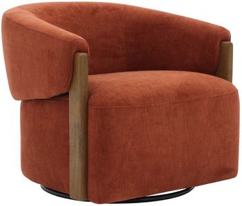 The stylish and comfortable Tatum accent chair features a 360-degree swivel for easy movement and a charcoal-finish wood surround base for a modern look. The cozy club chair design with shelter arms contains an integrated seat cushion, providing a relaxing seating experience.Read More