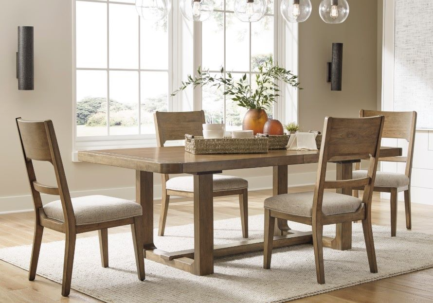 This dining package sits comfortably at the intersection of modern lodge and farmhouse aesthetics. Your warm and welcoming disposition is reflected in the charming architectural elements and light brown glazed finish. Even with its poise, the set remains practical, defining your dining room with reliable function and style.Read More