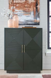 This accent cabinet makes a big impact with just one piece. Its intricately patterned doors impress with their dimension, while the dark green finish and sleek goldtone handles add a touch of modern elegance. Adjustable shelves add everyday functionality to this sophisticated yet approachable piece.Read More