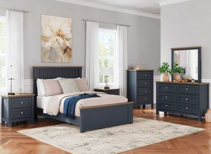 Add homespun charm to your restful retreat. A modern take on a timeless silhouette, this dresser pairs a dark slate blue finish with a light brown top. Drawer fronts and legs in a classic Shaker style bring an air of beautiful simplicity to the bedroom.Read More
