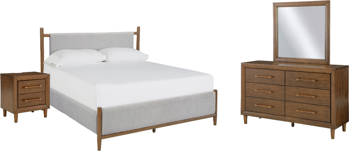 Lyncott King Upholstered Bed with Mirrored Dresser and Nightstand