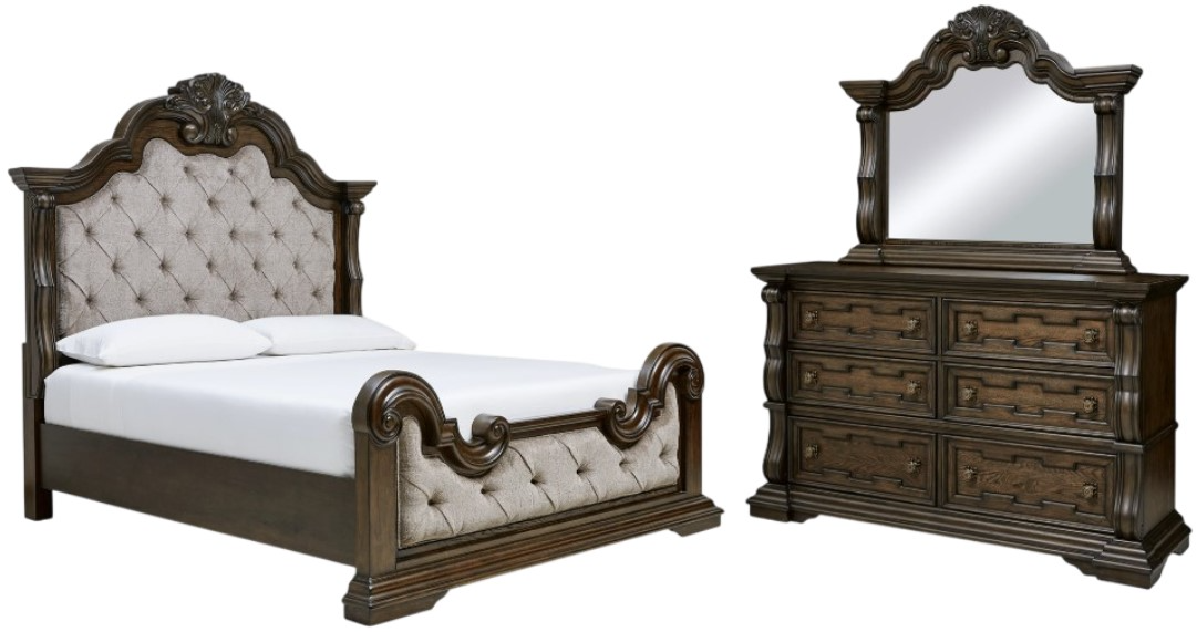 *Queen panel bed, dresser and mirror only, any other products that may be displayed are sold separately. Images may not represent the actual size and color in images may differ in person. See store for the actual color or finish.