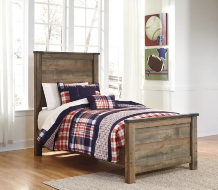 Whether she loves horses or he's a cowboy at heart, this twin panel bed matches their authentic sense of style. Its rustic finish, plank details, and nailhead trim are an homage to reclaimed barn wood, making for a sophisticated, vintage-chic look.Read More
