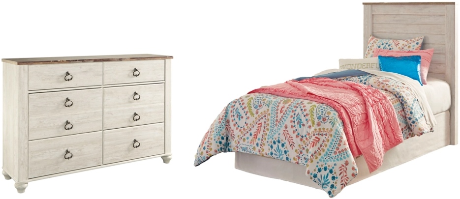 Includes twin panel headboard and 6-drawer dresser (mirror sold separately)