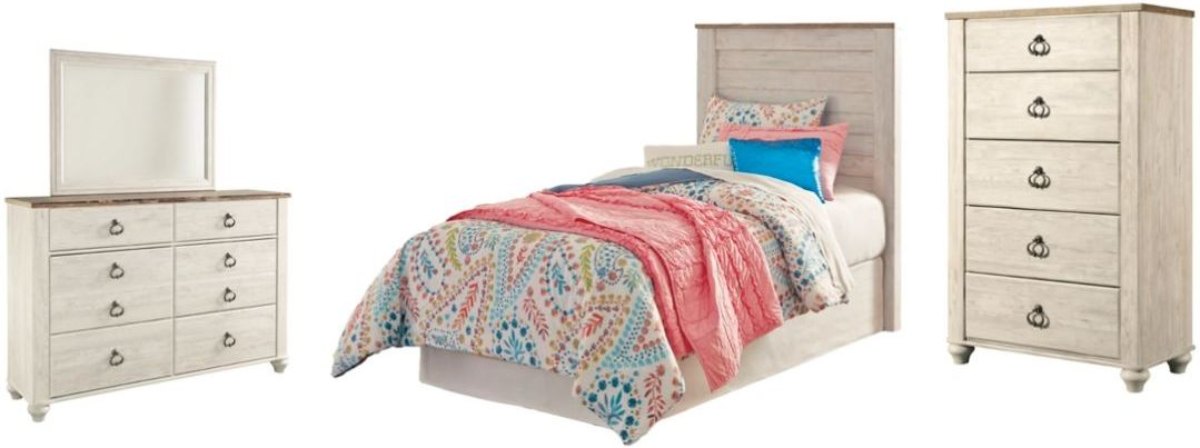 Includes twin panel headboard and 6-drawer dresser (mirror sold separately)