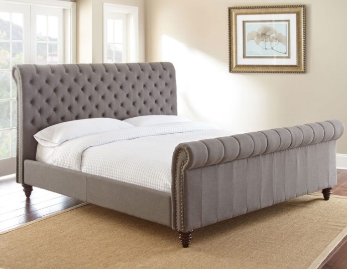 Relax in comfort with the Swanson Upholstered Bed from Steve Silver Company. A tufted headboard and nailhead trims are just some of the details built into this bed. The rolled headboard and footboard make the bed and stylish statement and the 39-piece rail system ensures a sturdy foundation for your good night’s sleep.Read More