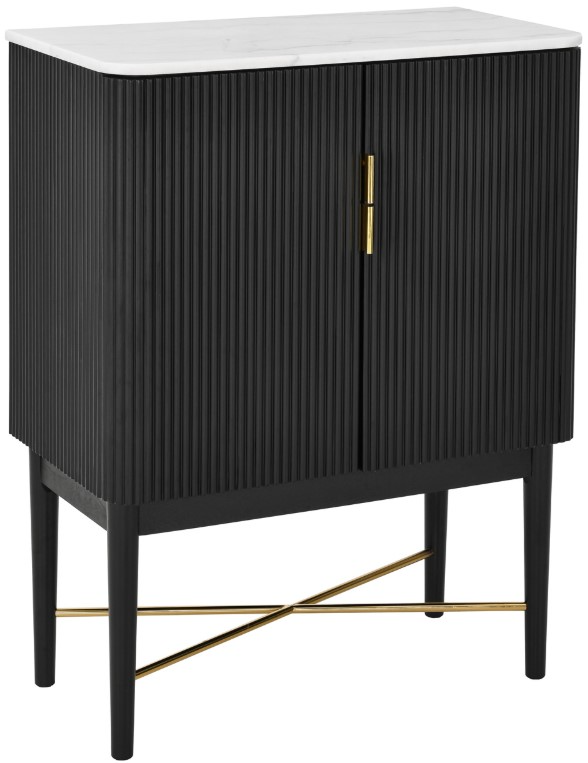 The Vida Black Wine Cabinet with Marble Top exudes art deco flair and old Hollywood glamor, offering elegant dining room storage. Its reeded black-finished doors with gently curved corners bring a refined touch to this functional piece.Read More