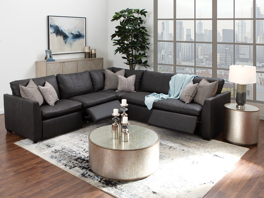 Experience effortless comfort with the Synergy® 5-piece power reclining sectional. Upholstered in soft, durable leather match, it delivers smooth power reclining. The modular design allows fully customizable configurations, making it ideal for lounging, entertaining, and everyday family living spaces today.Read More
